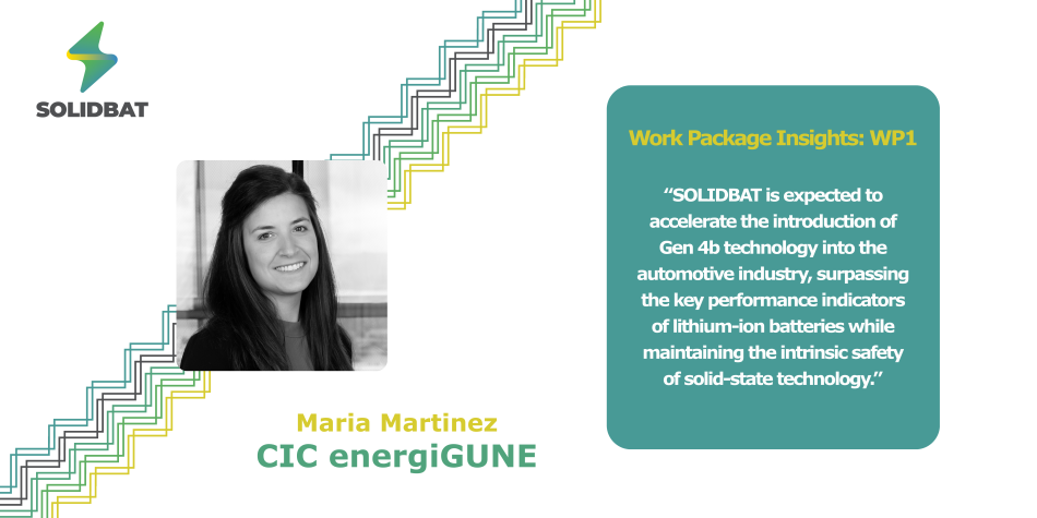 The SOLIDBAT project is driving the development of next-generation solid-state batteries for electric vehicles. Under the coordination of María Martínez from CIC energiGUNE, WP1 focuses on ensuring the technology meets performance, safety, and sustainability targets while being compatible with large-scale production.