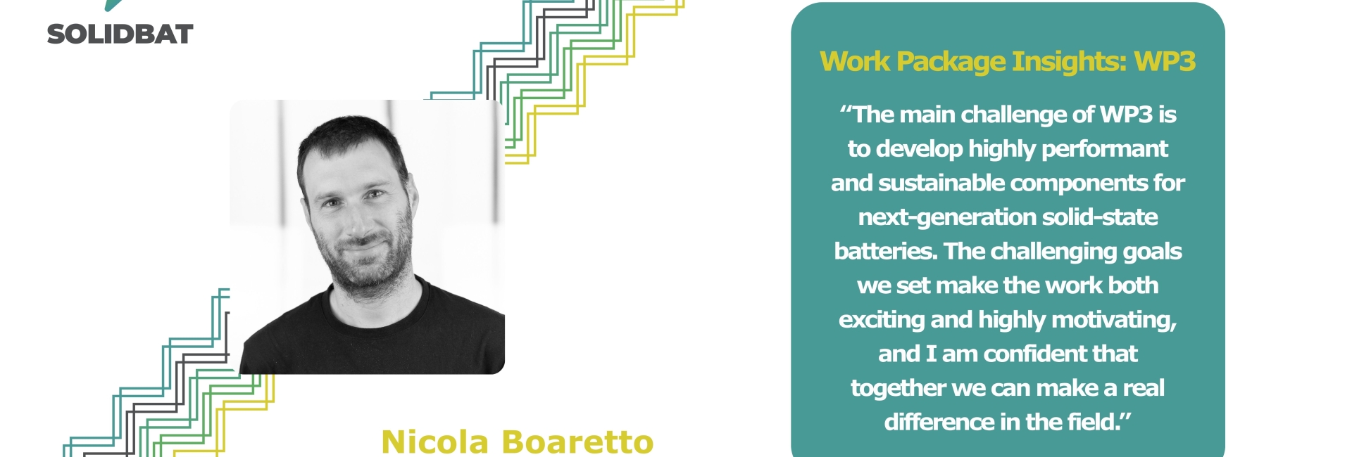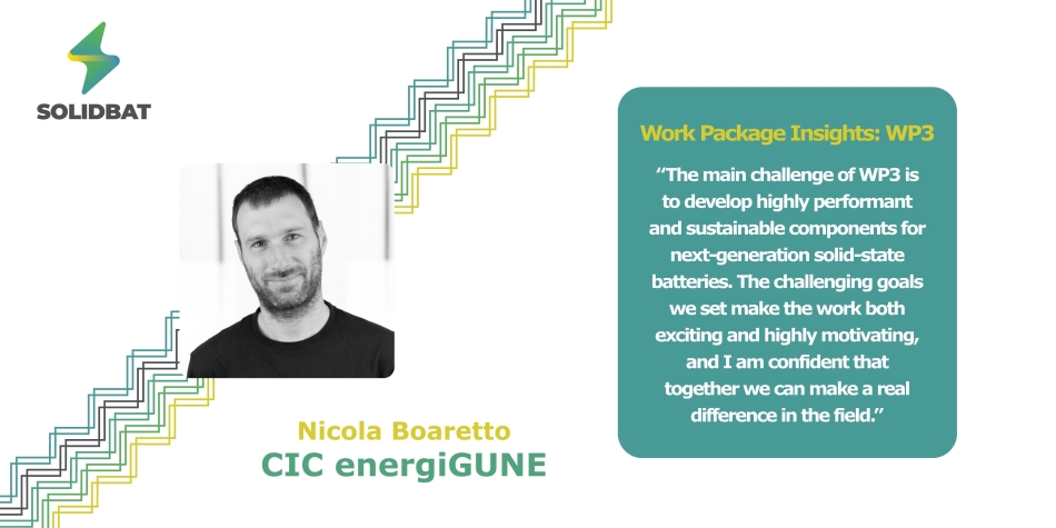 Within the SOLIDBAT project, Nicola Boaretto from CIC energiGUNE leads Work Package 3, dedicated to developing next-generation materials and components for solid-state batteries. His team focuses on creating high-performance, sustainable cathodes, electrolytes, and anodes that can be seamlessly integrated into scalable, industrial-ready cells.